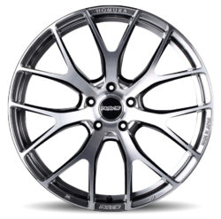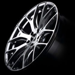 Instead of a conventional cross-sectional shape consisting of elegant curves, the new design features a flat tapered cross-section. This design emphasizes the wheel’s sheer size, realizing whole new elegant appearance..