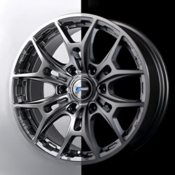 57BNX a new LPS (large P.C.D.) model, the first new addition to the AZURE series in a little while mainly targets SUVs, such as Prado and Hilux. In the 2×6 design, the Y-spokes are arranged in a well-balanced way with the six holes. Its small-diameter center cap, which was adopted for the first time for the Gram Lights LPS models, has realized flowing concave lines that descend toward the center. The well section with a design featuring projections and depressions makes the wheel look voluminous enough even in comparison to the vehicles. The stylish and wild 57BNX is a new AZURE model that looks attractive both on and off roads.