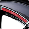 Fascinating color and a luxurious feel from black chrome coating. The lens type center cap enhances its gorgeous perception furthermore. The exclusive Hibosscal red sticker becomes an accent color and braces up its appearance. The long awaited JET BLACK EDITION debuts with a different taste from the standard model..