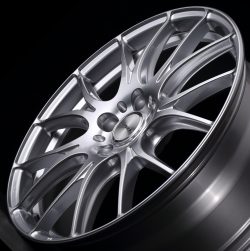Making a wheel of a size that can be fitted to a mid-sized car involves challenging constraints, rendering it inevitable for designers to give up on devising a satisfactory wheel face shape. Still, although narrow, HOMURA 2X7plus successfully delivers the strong sense of dynamism that characterized the base model HOMURA 2X7. The handsome wheel face lines stretch from the center hub to the rim flange, elegantly highlighting the car’s bottom fitted with HOMURA 2X7plus.