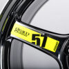 The 57CR Limited comes with fluorescent stickers, which have become a trend in recent competitive scenes, especially in Formula Drift. By incorporating a bright fluorescent yellow color, the overall presence of the wheel is significantly enhanced.