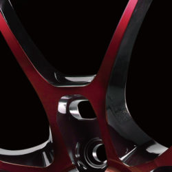 The first 19-inch G025 that debuted in 2019 was named after the G series and the 0 series. G025 is the emotional form of the G series and features the weightless holes characteristic of the 0 series and 5-mm thin spokes that are impossible to achieve with conventional technologies. They are the epitome of professionally forged wheels. In 2020, we introduced special DB/C (Dark Blue/DC) when we put 20-inch wheels on the market. The praise that we then received for an amazing aspect unique to the G025 is fresh in our memory—some spokes appeared light blue, while some other spokes and holes sections appeared dark blue, and still other spokes appeared to be nearly black. In 2021, upon the debut of our 18-inch applications, we introduce the limited model BR/C. BR/C stands for Bordeaux red and clear. Unlike the dark color of the previous model G025DB/C, BR/C expresses a high spirit that reminds us of the color of young Bordeaux wine.