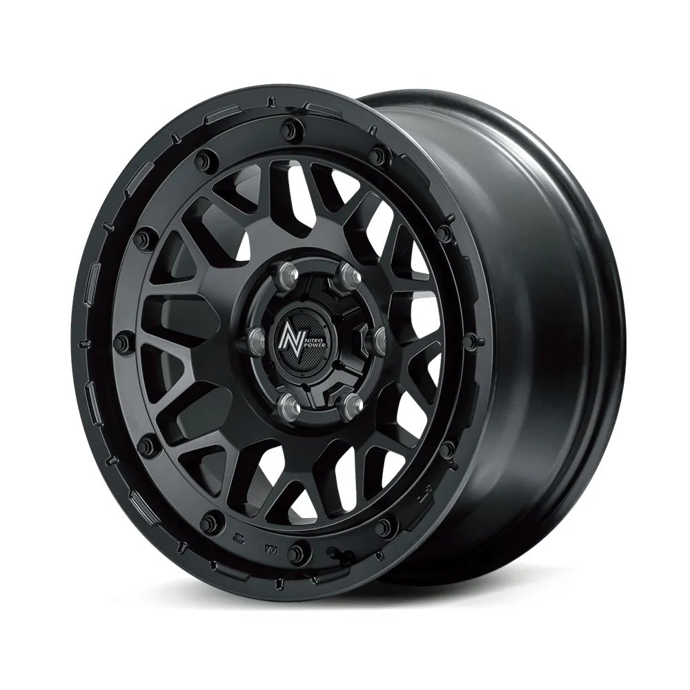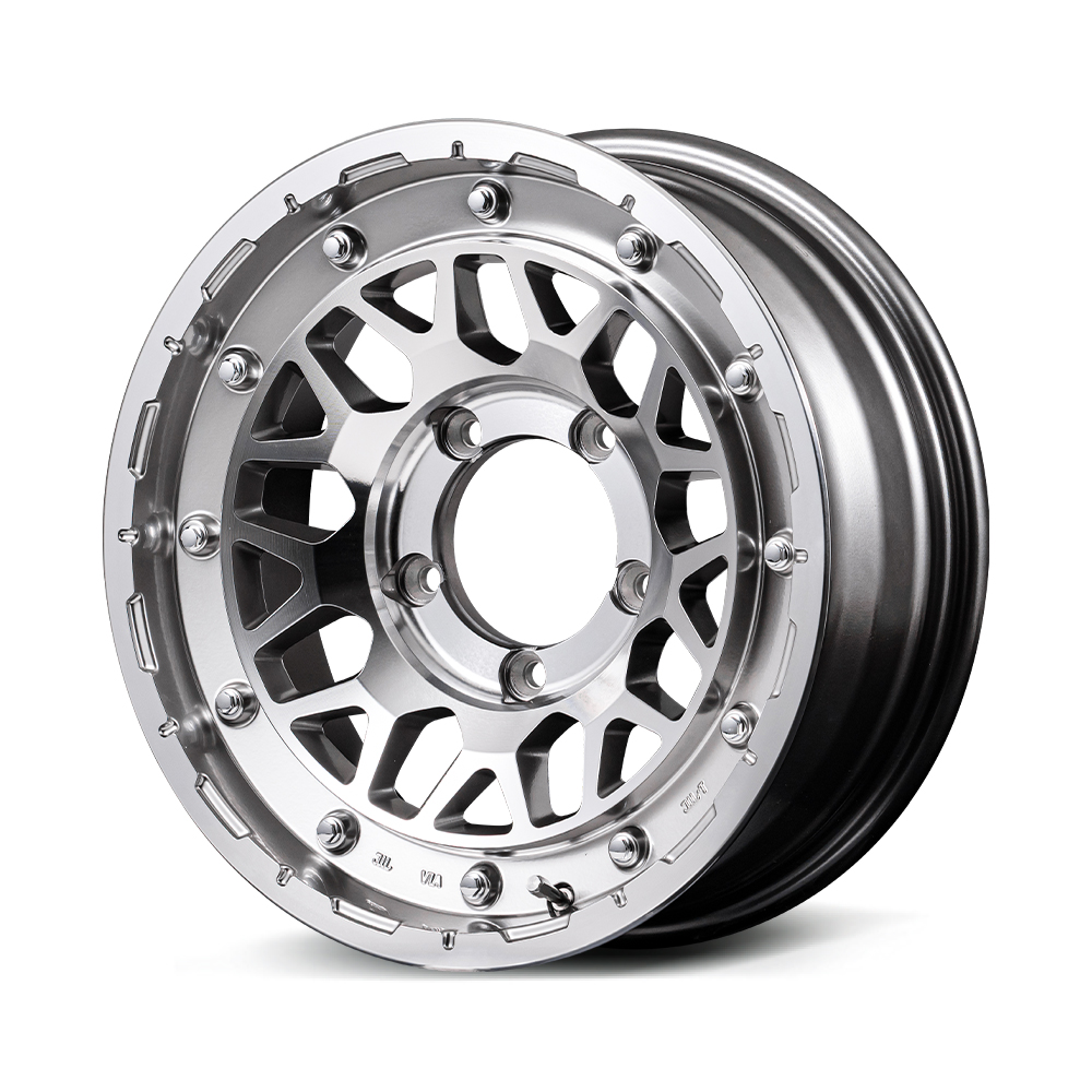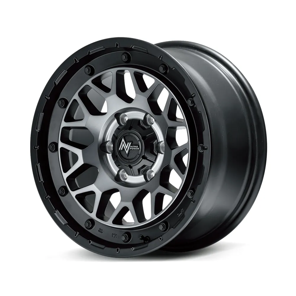 2×9 mesh design with a military rugged feel. 2×9 rugged mesh is installed on the M29 STINGER with the same bolt design on the outer perimeter that was inspired by the H12 armored car. The mesh disc part adds a sporty impression to the rugged and wild atmosphere, and matches a wide range of vehicles from nitro-powered main targets such as SUVs and full-scale off-road vehicles to urban off-road vehicles. The spoke intersections of the 2×9 mesh have large surfaces to appeal their strength. The concave cross section created by adding a clear sectional break expresses a detailed three-dimensional effect. The outer circumference has a special pierced bolt to emphasize the military feel and produce the originality of Nitro Power with impact. The colors available include Barrel Black, which is inspired by the texture of a gun, and Semigloss Black Clear, which has an army-like finish, as well as a new Hyper Silver/Machined Face color that shines like aluminum itself.