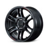 The R26 is the answer MID has come up with to balance design with functionality in terms of weight, strength, and rigidity. The design was drawn with the spoke silhouette as a 6-block, and then shapes that were not necessary for function were considered. The final result was a twin-spoke design, which is both lightweight and powerfully beautiful. At the joint between the rim and spokes, which is the key to athletic performance, a bridge surface was created to increase strength and rigidity while giving a three-dimensional, powerful impression. The flange shape consists of a simple tapered surface all the way around to improve the rigidity of the rim flange. In addition, the flange flange has a simple tapered surface around the rim flange to improve the rigidity of the rim flange. Side cuts are made on the side surfaces to concave the shading so that even a flat cross section looks more three-dimensional when installed on a high offset vehicle. The angles of the spokes, made possible by the pursuit of a beautiful and thoroughly lightweight design, further enhance the appeal of the product. The RACING design was achieved by paying attention to the smallest details.