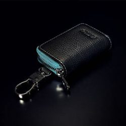 A leather key case with the “P.MU” logo embossed. Inside, a leather key case equipped with a fall-prevention chain that can hold the key. The one-touch hook on the outside makes it easy to attach to belts, etc.